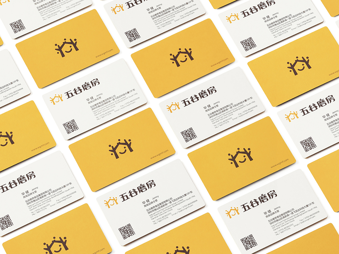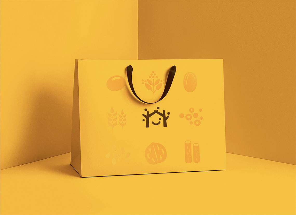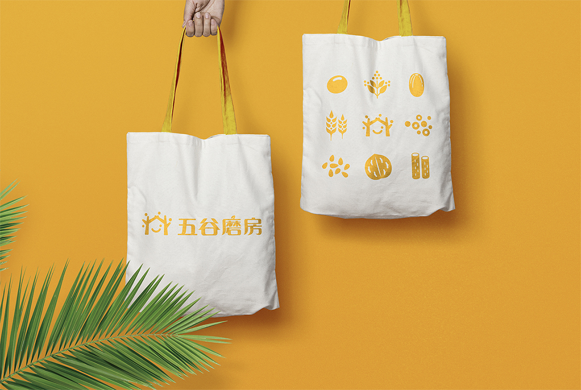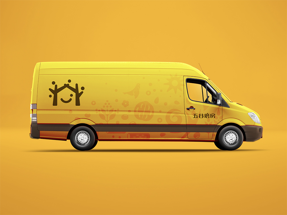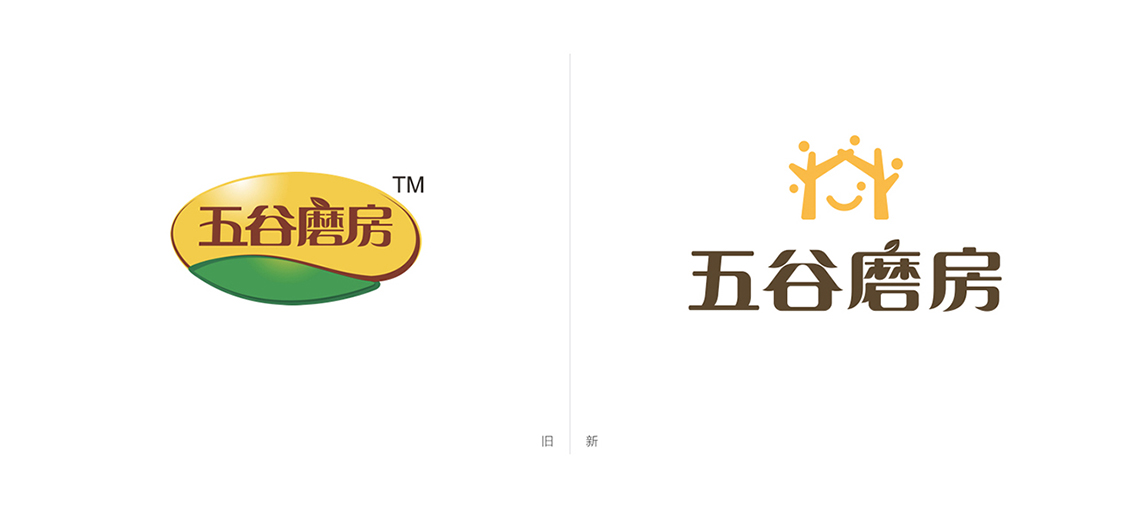 為解決五谷磨房原有品牌形象面臨的問題,全新的logo采用圖形標(biāo)加中文字的組合形式,Logo的整體設(shè)計簡單而富有親和力。品牌形象設(shè)計由五顆谷粒以及兩棵枝丫相連的樹圍繞著微笑的符號展開,如同父母牽手為家人搭起一個充滿歡樂的家,傳遞的是關(guān)愛與呵護(hù)的品牌愿景,同時也寓意著企業(yè)的不斷成長,以及“以人為本”的經(jīng)營理念。