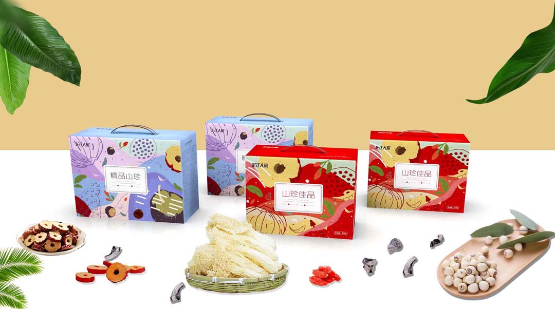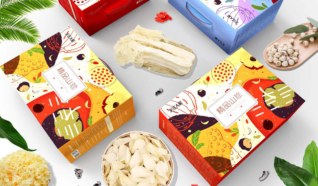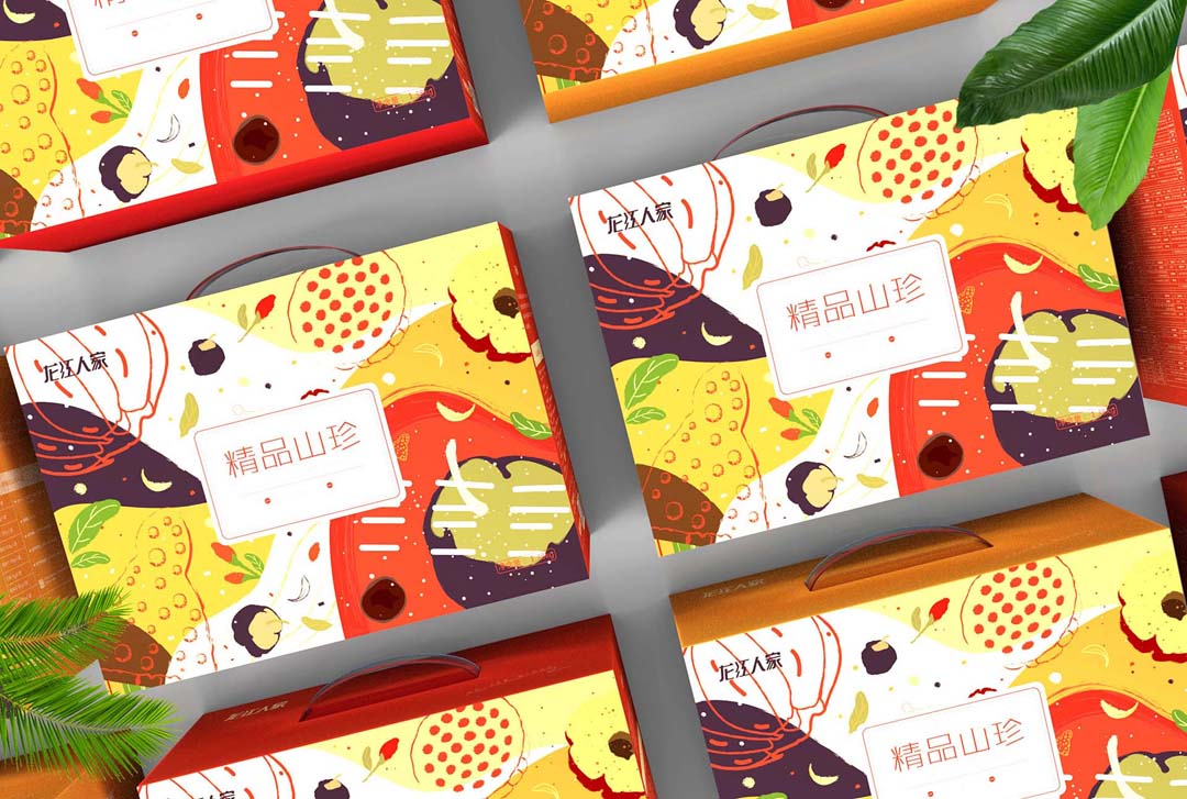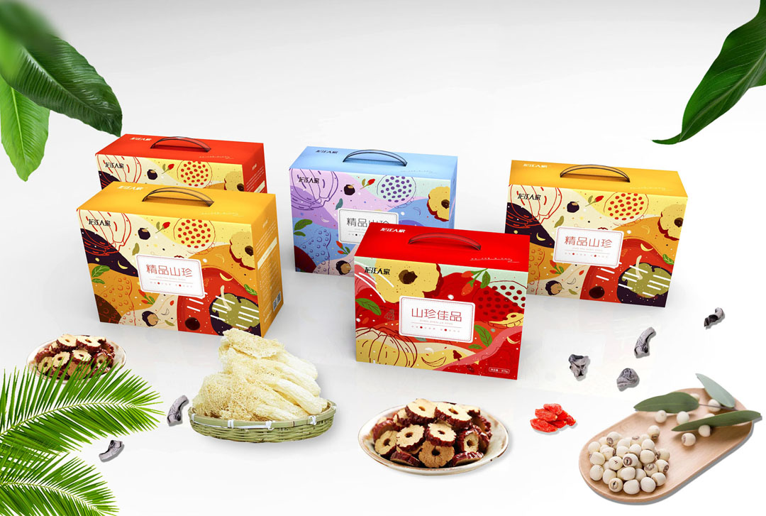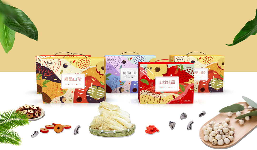 在與客戶多次溝通的基礎(chǔ)上,渡岸創(chuàng)意包裝團隊首先對龍江人家山珍產(chǎn)品,進行了品類整合,并根據(jù)企業(yè)的品牌屬性和不同種類產(chǎn)品的個性,運用時尚插圖形式,創(chuàng)意和設(shè)計了一套完整的山珍產(chǎn)品禮盒包裝,使得龍江人家在山珍伴手禮銷量倍增。