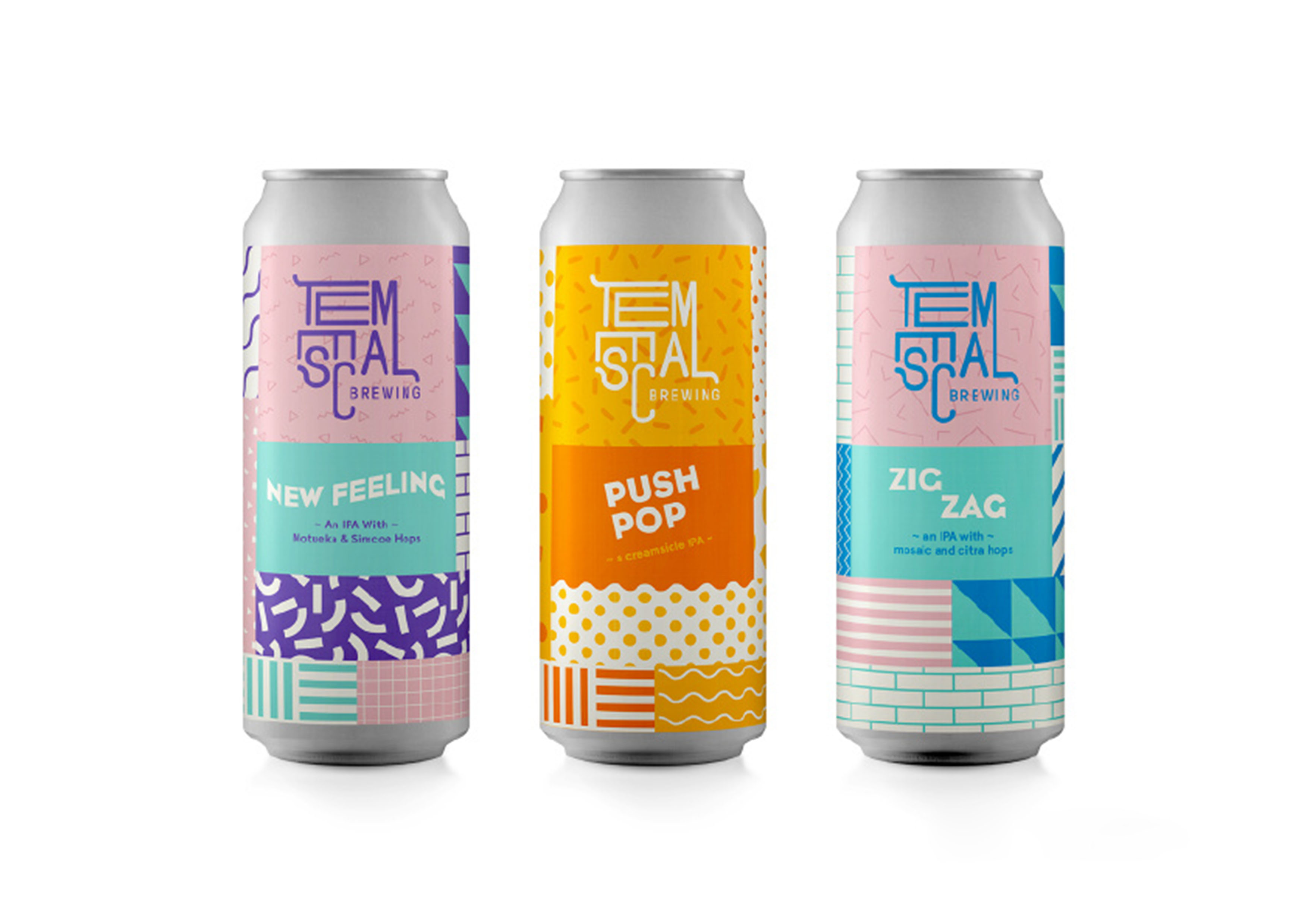 ? ? ? ? ? 加利福尼亞Temescal Brewing啤酒包裝設(shè)計,Temescal釀造公司每個月都會發(fā)布獨特的啤酒。他們需要一個靈活的包裝設(shè)計系統(tǒng),可以讓每個版本保持新鮮的設(shè)計。 采用了層疊網(wǎng)格以及彩色圖案的拼湊手法。 50種獨特的圖案,在排版方式和擴展的調(diào)色板可以實現(xiàn)無盡的設(shè)計選擇。 ????