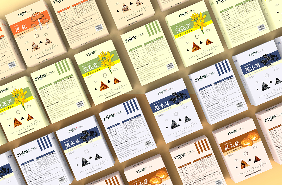 全新的山珍包裝設(shè)計(jì)形象以時(shí)尚和輕松為主,打破了之前包裝厚重傳統(tǒng)的感覺,以輕松愜意的包裝設(shè)計(jì)把干活產(chǎn)品做成方便快捷的消費(fèi)品,讓消費(fèi)者形成日常的消費(fèi)習(xí)慣,淡雅清新的色調(diào)傳遞出輕松、原生、自然。在插畫的處理上運(yùn)用寫實(shí)和寫意風(fēng)相結(jié)合營造出詩意唯美的意境;包裝形式新穎、便捷,包裝設(shè)計(jì)在保留了品牌傳統(tǒng)文化的基礎(chǔ)上,注入了新的生命活力。(包裝升級(jí)對(duì)象:木耳包裝設(shè)計(jì)、花菇包裝設(shè)計(jì)、猴頭菇包裝設(shè)計(jì)、黃花菜包裝設(shè)計(jì))