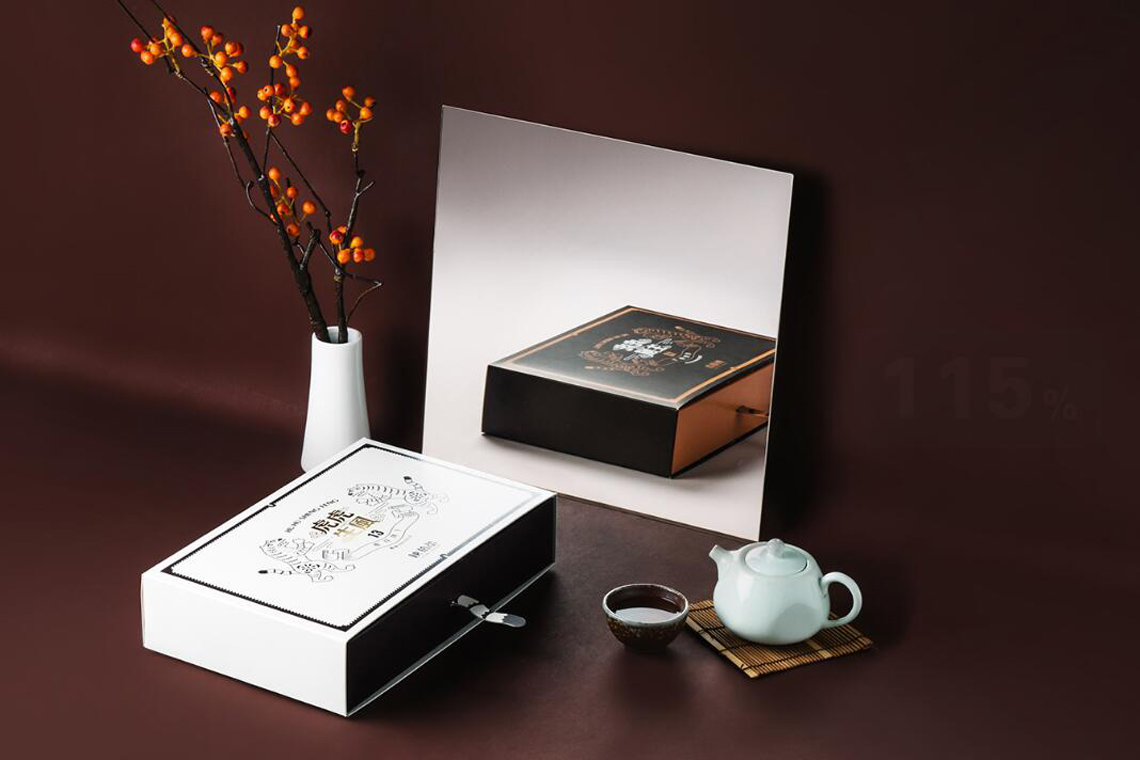 外盒設(shè)計上,一對老虎相視而站立,威風(fēng)凜凜,命為虎虎生風(fēng),如同虎符一分為二,內(nèi)含了許多承諾及約定。
