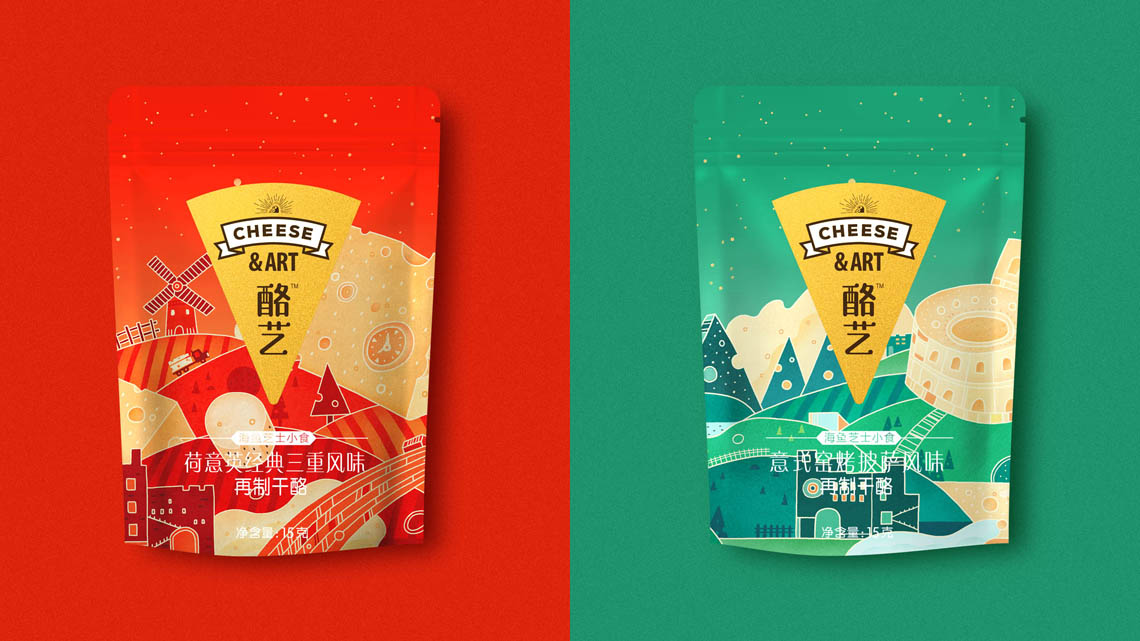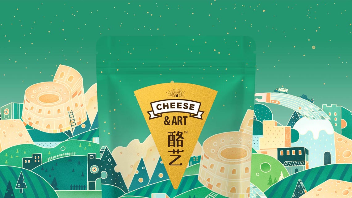 這是伊利旗下的品牌, 為了針對(duì)年輕消費(fèi)群體, 客戶計(jì)劃對(duì)包裝提升新一輪升級(jí)。因此在設(shè)計(jì)上也應(yīng)當(dāng)表現(xiàn)故事性趣味感。我們通過(guò)區(qū)分對(duì)應(yīng)的口味分類,將各國(guó)的元素重組,并重新繪制出新的干酪地圖, 如圖中看到那樣,干酪的山體、長(zhǎng)城干酪、 荷蘭風(fēng)車(chē)、羅馬斗獸場(chǎng)等等元素。在視覺(jué)上形成干酪世界,自然的融入到包裝載體中,使人對(duì)我們的產(chǎn)品有了聯(lián)想和購(gòu)買(mǎi)欲望。