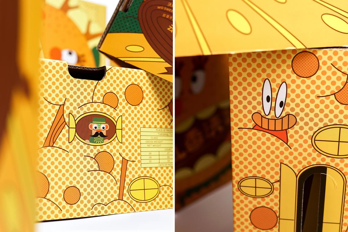 開始我們就對(duì)此款產(chǎn)品設(shè)定了角色,它就是“沃柑”。我們把它激活,它變身了,跑到林地里,大口大口的享受著果實(shí),似乎住在樹上的“蠻人”被吵醒了,想看看究竟發(fā)生了什么?還好,大伙都是一群可愛的人,一起分享手里的果實(shí)吧!整個(gè)包裝豐富多彩,自由活潑,區(qū)別市場(chǎng)的同類產(chǎn)品。