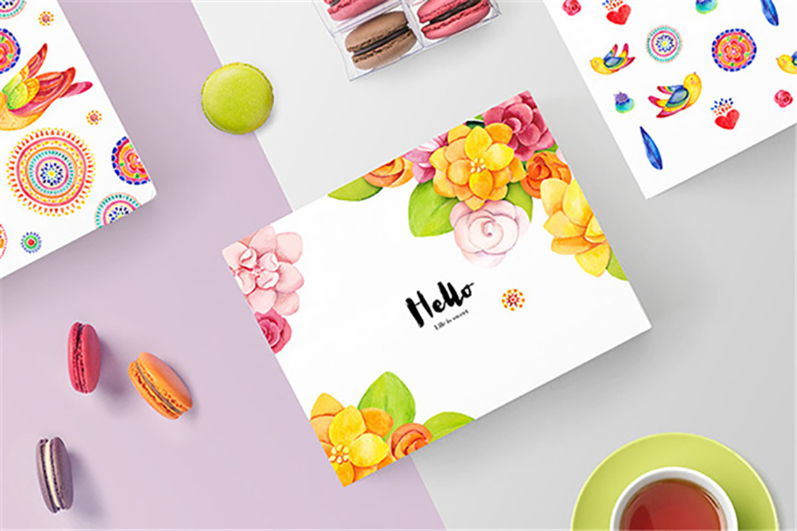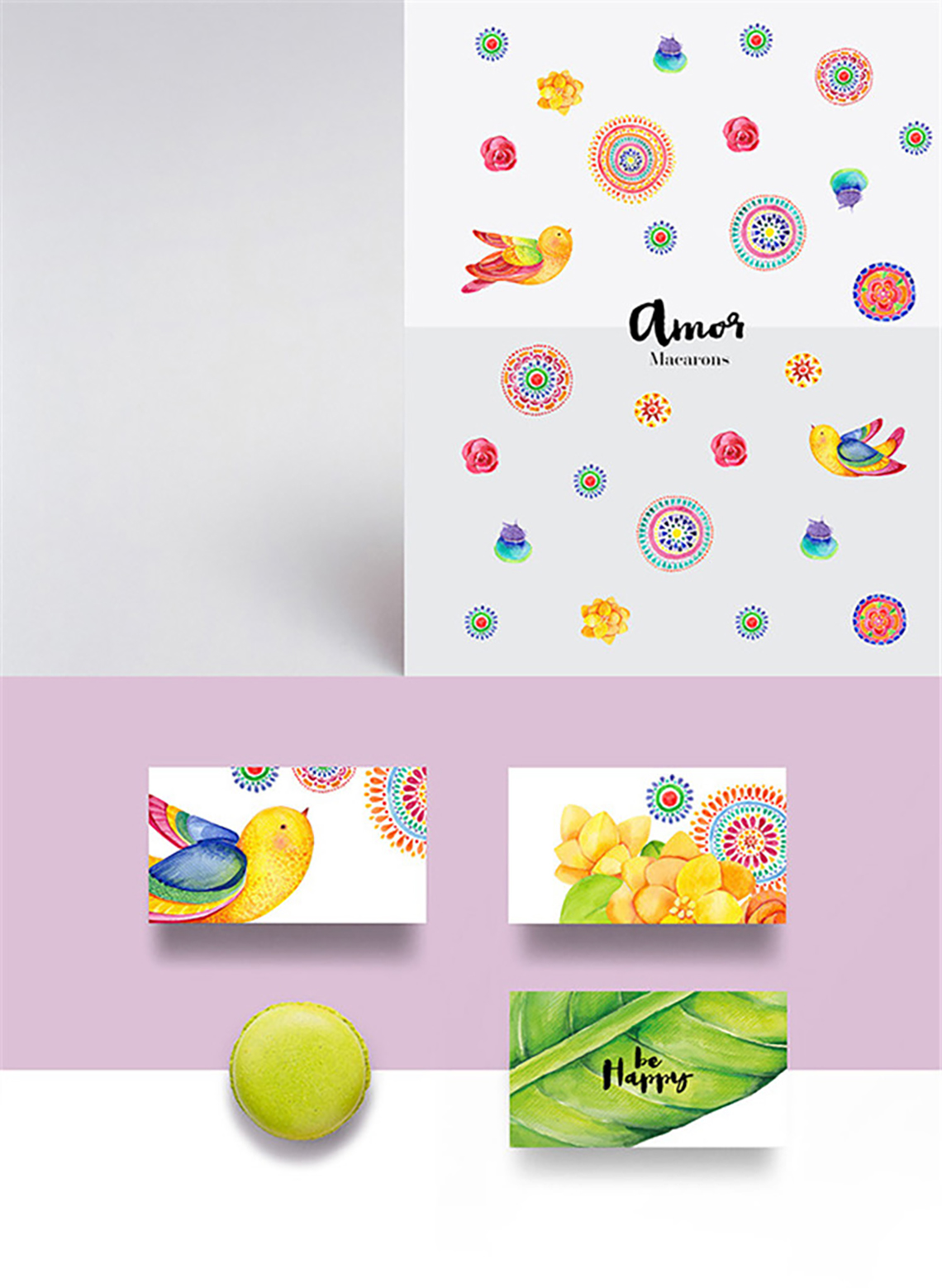 這是為一家以制作馬卡龍為特色的面包房設計的品牌標識及包裝。