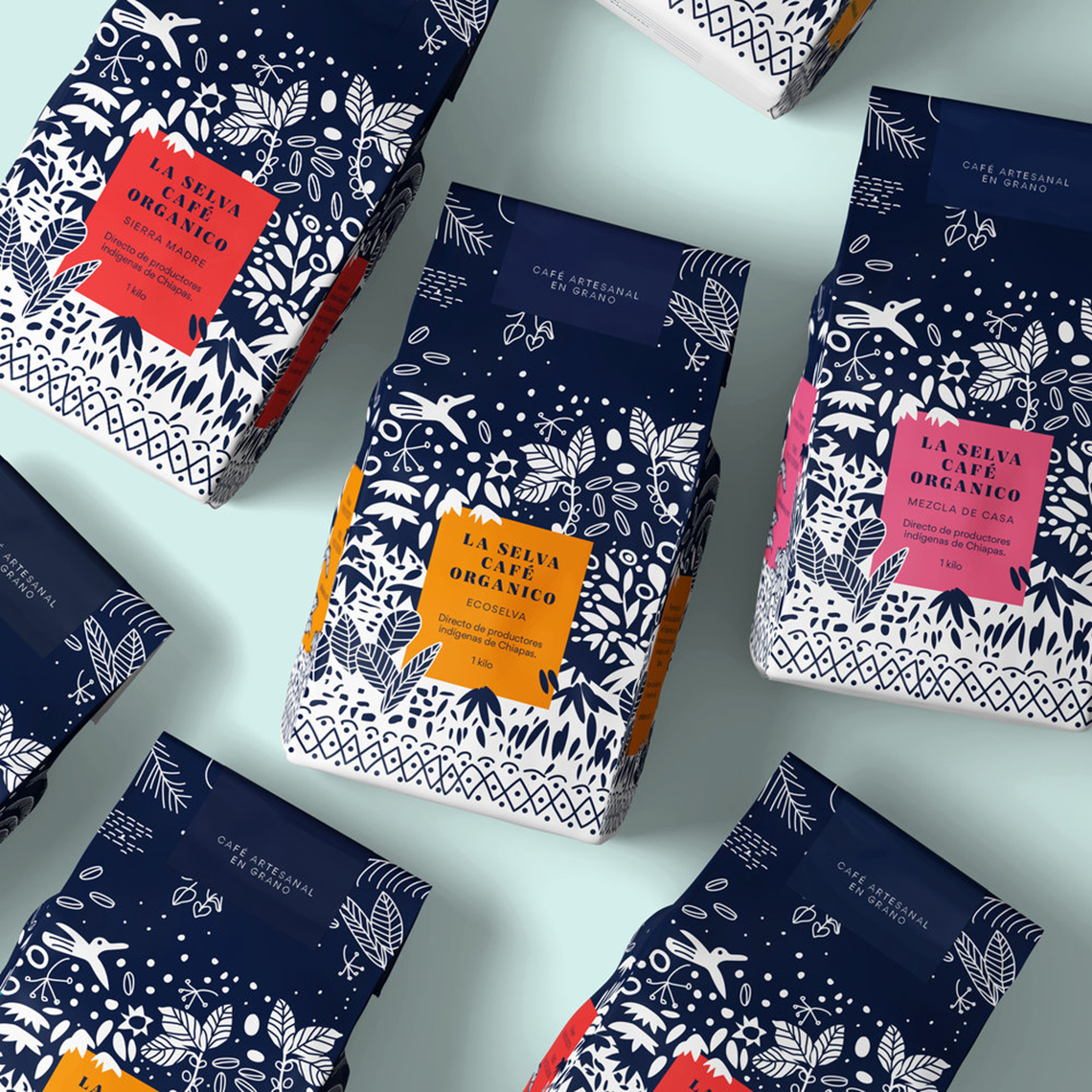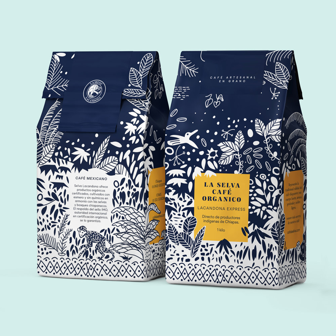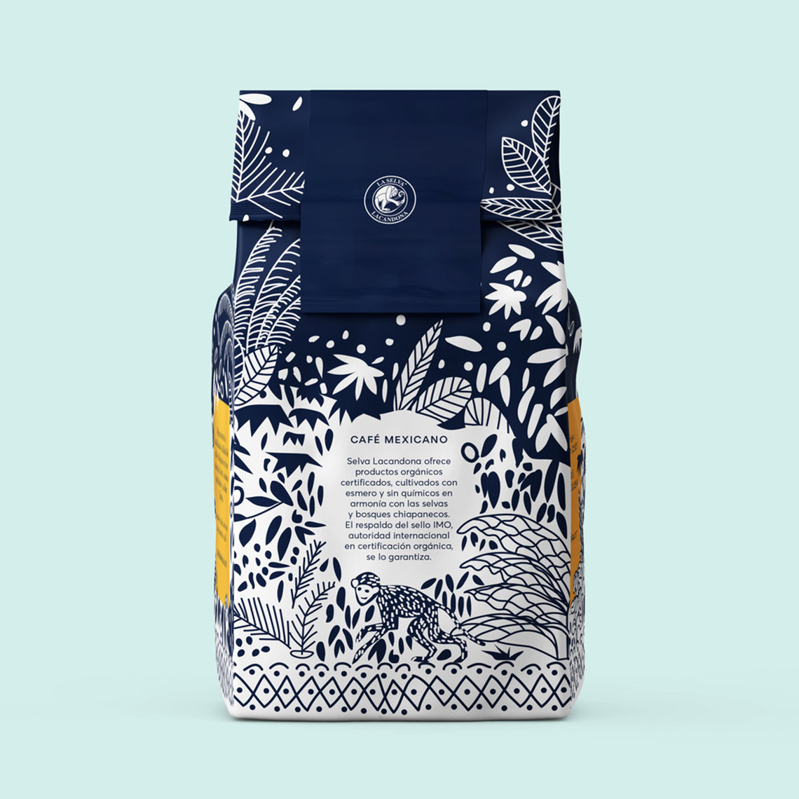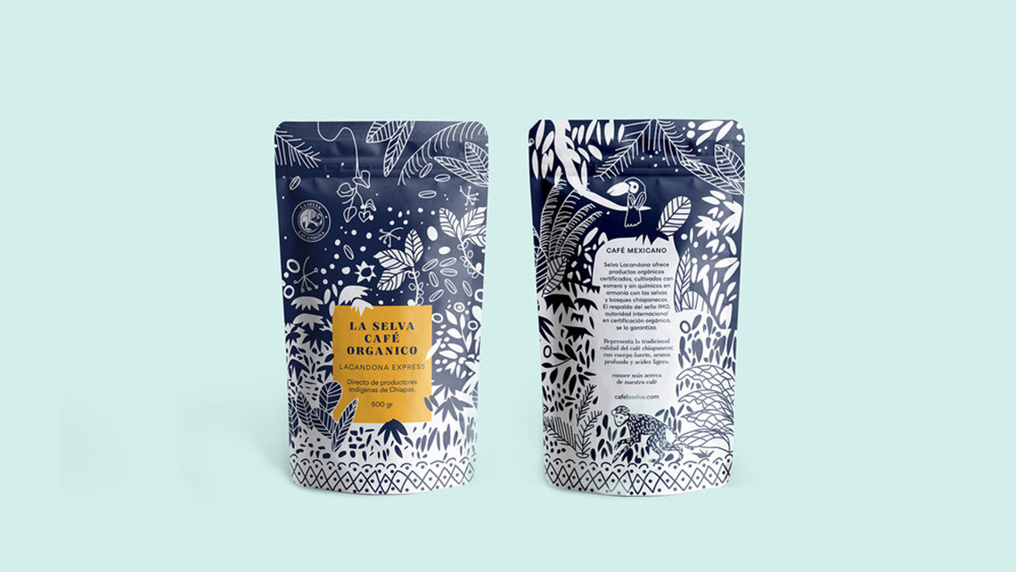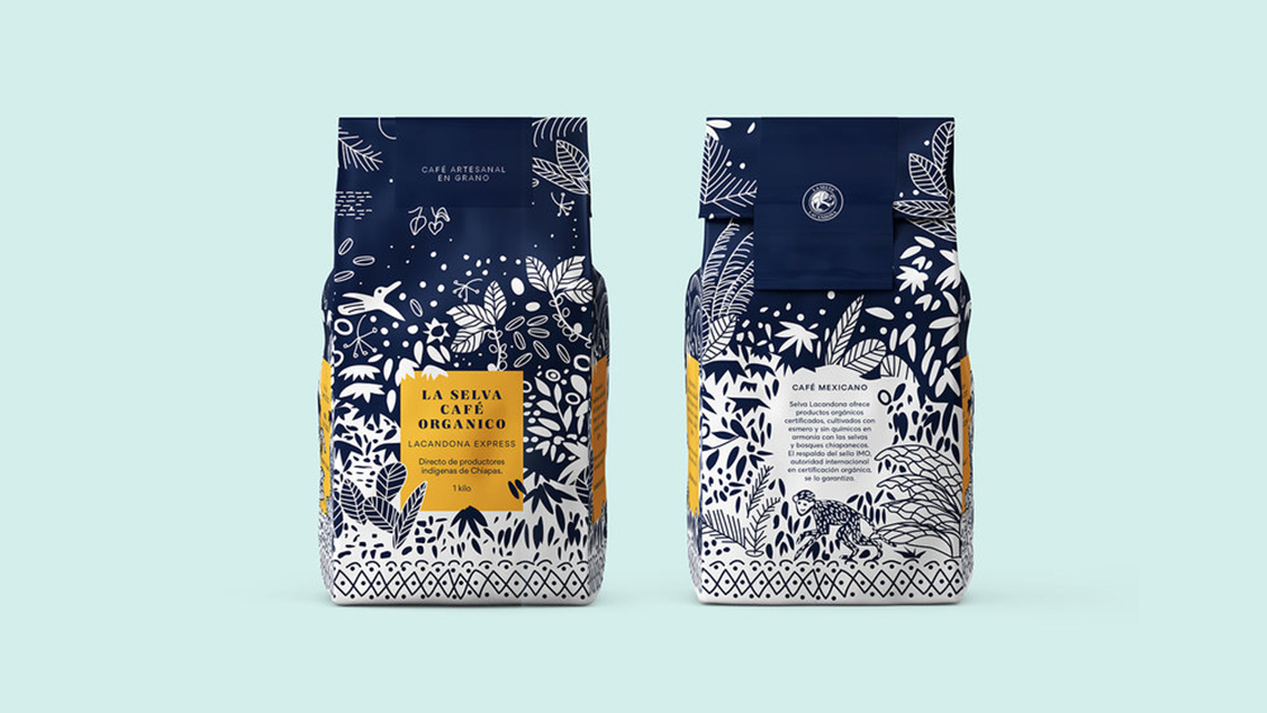 ? ? ? ? La Selva Café提供經(jīng)認(rèn)證的有機(jī)產(chǎn)品,經(jīng)過精心培育,沒有化學(xué)品,與墨西哥恰帕斯的叢林和森林和諧相處。它代表了恰帕斯咖啡的傳統(tǒng)品質(zhì),具有濃郁的酒體、濃郁的香氣和淡淡的酸度。海事組織印章的支持保證了其有機(jī)來源。為了重新設(shè)計,以前的包裝插圖的元素被采取,使它有一個更現(xiàn)代和更具吸引力的扭曲。深藍(lán)色的顏色和正負(fù)兩色之間的相互作用,說明了咖啡采摘的茂密叢林,這是該地區(qū)典型的動植物間的叢林。