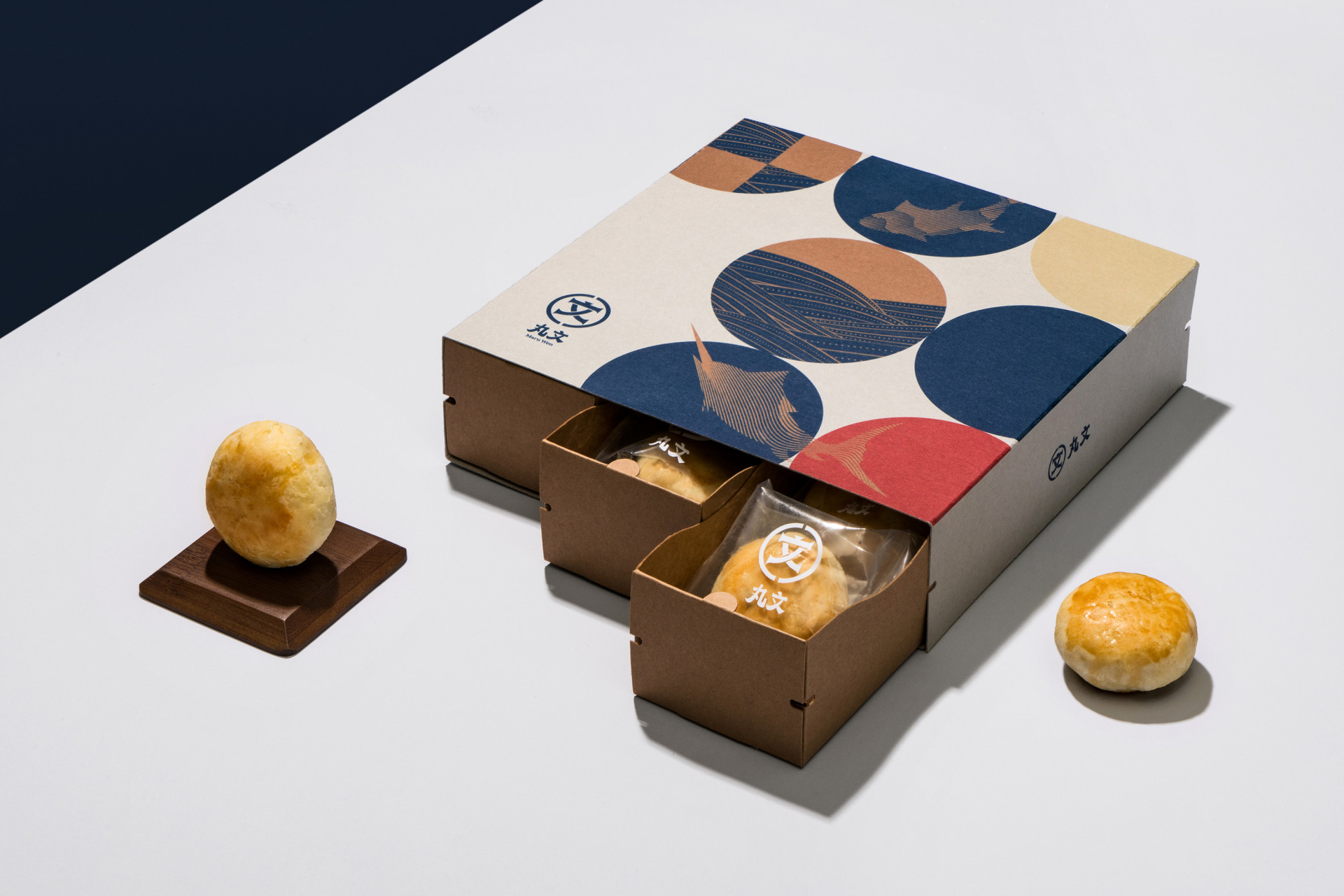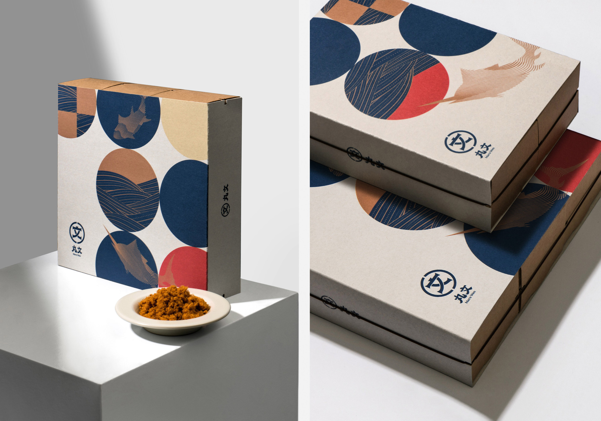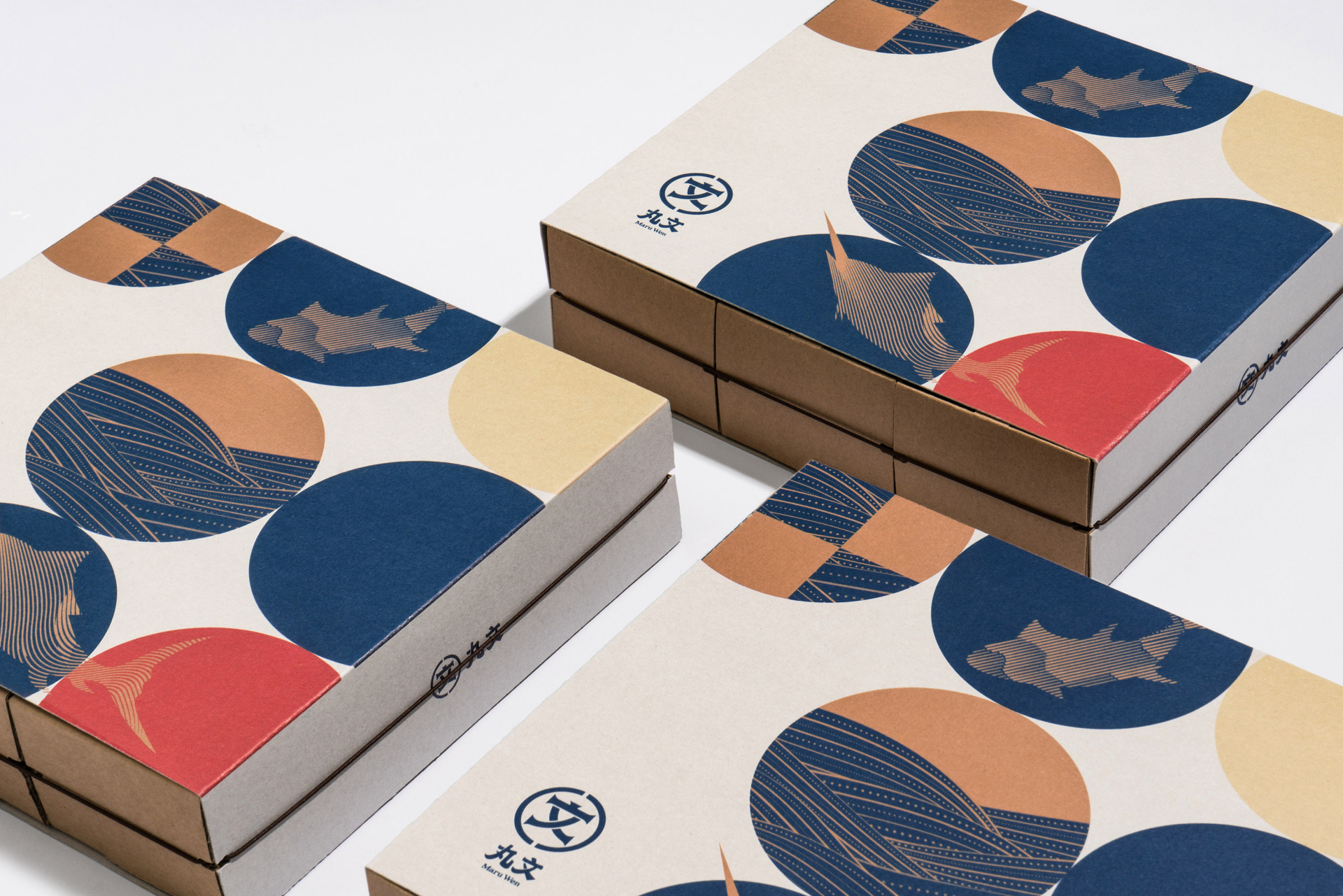 禮盒簡(jiǎn)化了原先大面積底色印刷,改以圓圈構(gòu)成的簡(jiǎn)約視覺,呼應(yīng)丸文Maru(日語(yǔ):まる圈或圓之意),運(yùn)用品牌輔助圖形,靈活的留白,讓禮盒成為品牌通用,可組裝各式產(chǎn)品不被限制,整體油墨印刷面積減少 30%、包材體積減少 35%!