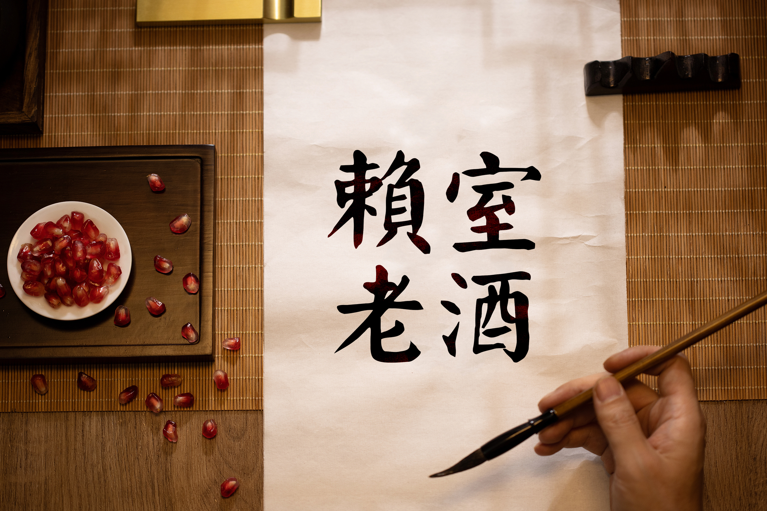我們選取了一代名臣,滿門(mén)忠烈的顏真卿[顏體],并在其基礎(chǔ)上優(yōu)化完善,形成了開(kāi)闊、雄渾、寬厚、中正樸茂的“賴室老酒”字體標(biāo)志符號(hào)。整體書(shū)體中正樸厚,一筆一畫(huà),鄭重其事,和賴室老酒的價(jià)值觀內(nèi)涵是相吻合的。